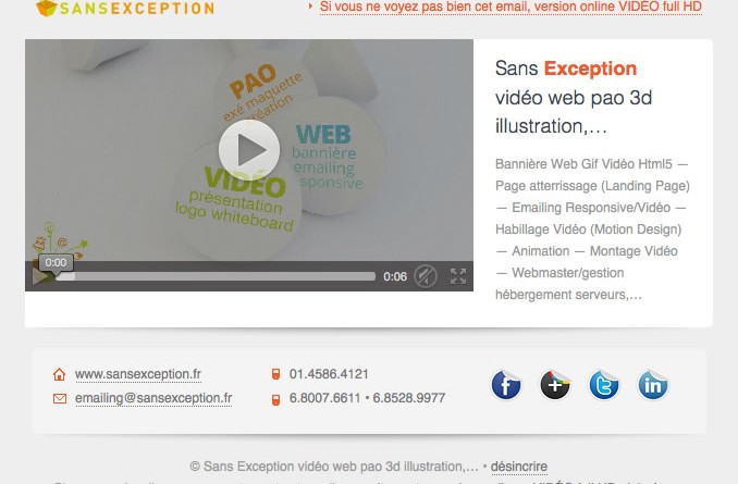 la réalisation des pages emailing vidéo ( mail vidéo ), sans ou avec affichage adaptative sur supports : smartphones tablettes ordinateurs,…